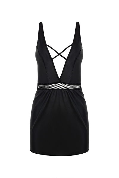 La robe Kristeen est une robe à la fois confortable, sensuelle et sexy, conçue dans un tissu noir très doux. Son décolleté plongeant, son dos et ses fesses partiellement nus, recouverts de fines lanières noires croisées vous rendrons irrésistible.